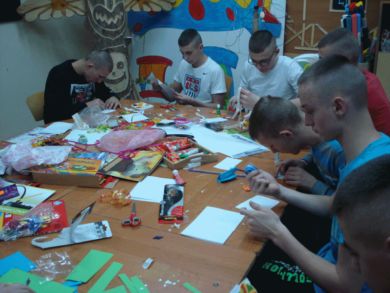 WYCHOWANKOWIE PRZYGOTOWALI KARTKI Z OKAZJI DNIA KOBIET